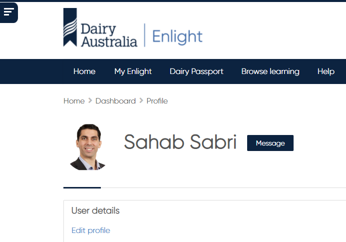 Selecting the Profile link will then display other options, such as a list of your courses, any forum and blog entries, and a link to edit your profile.