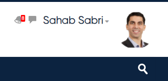 You can access your profile from the user menu at the top right. It's where you see your name and an arrow.